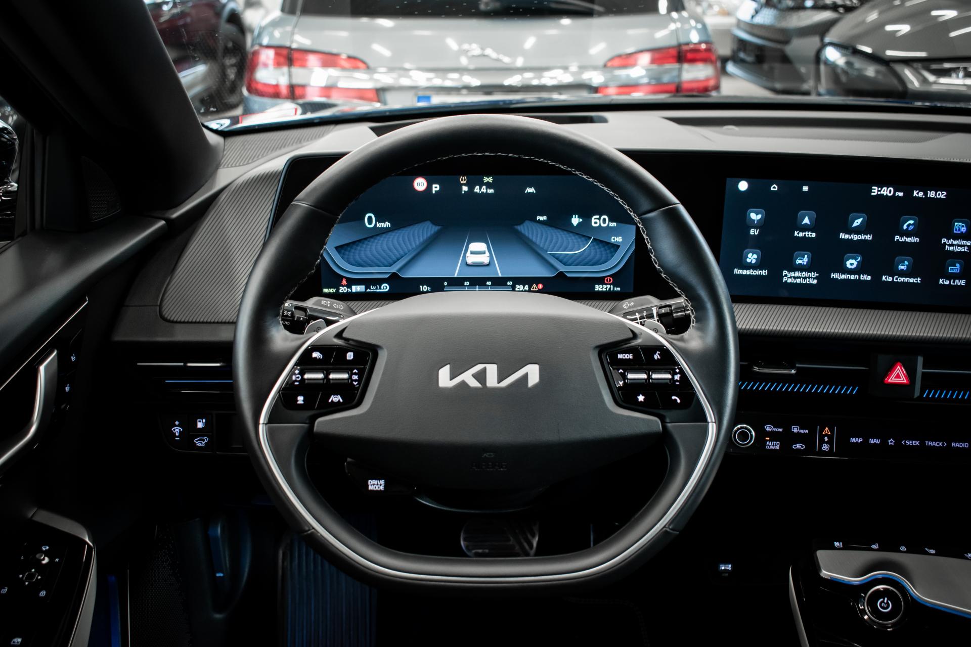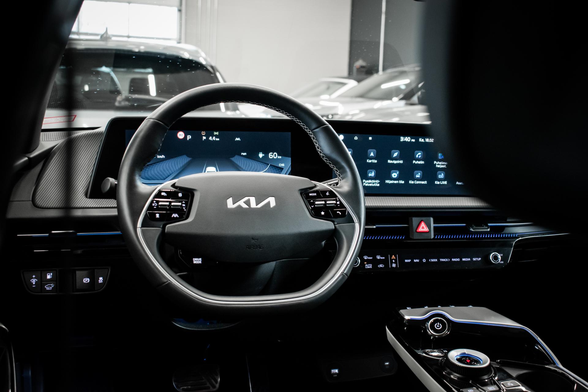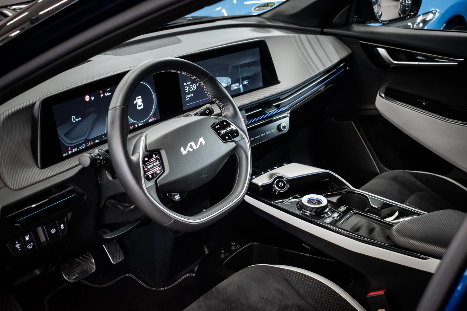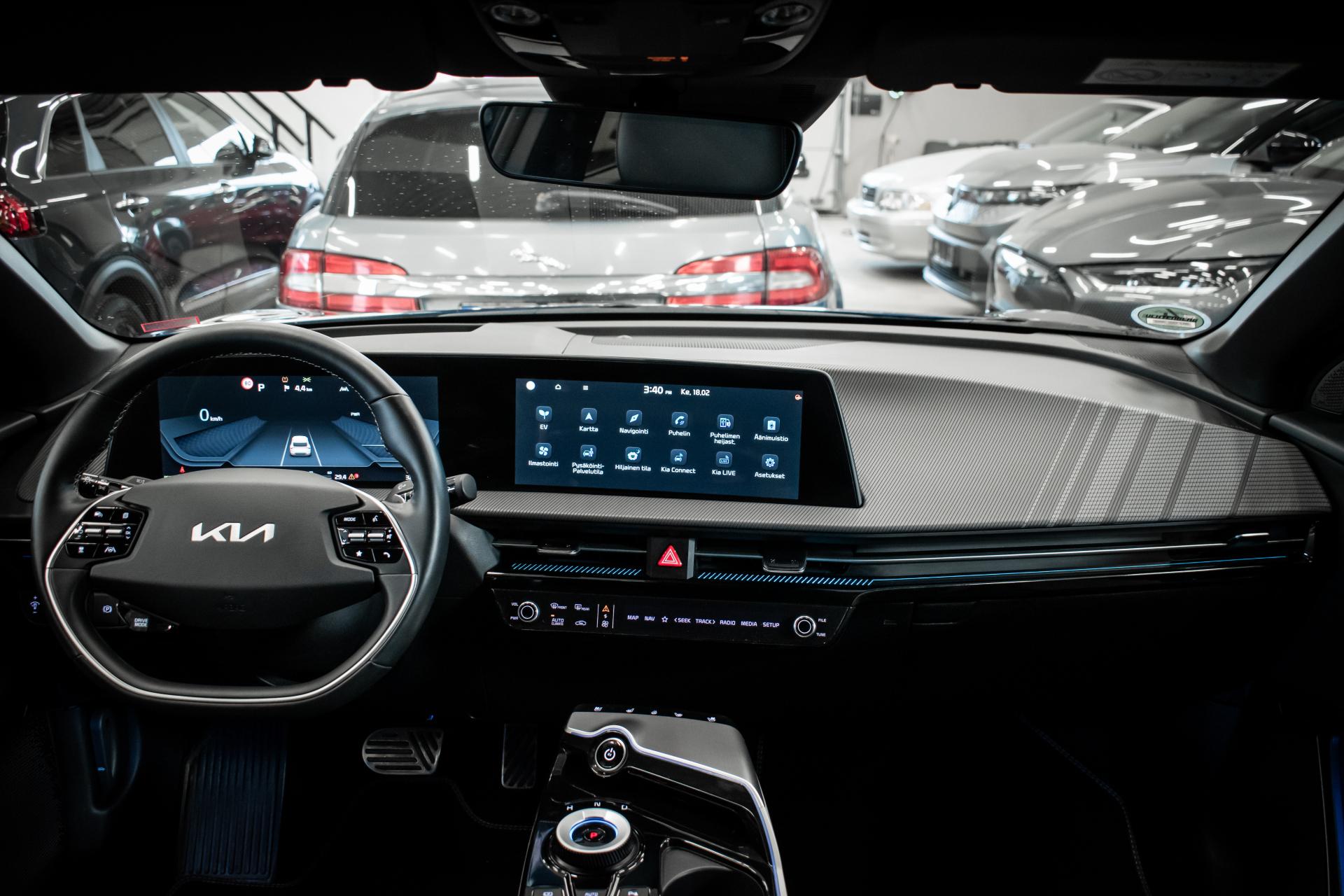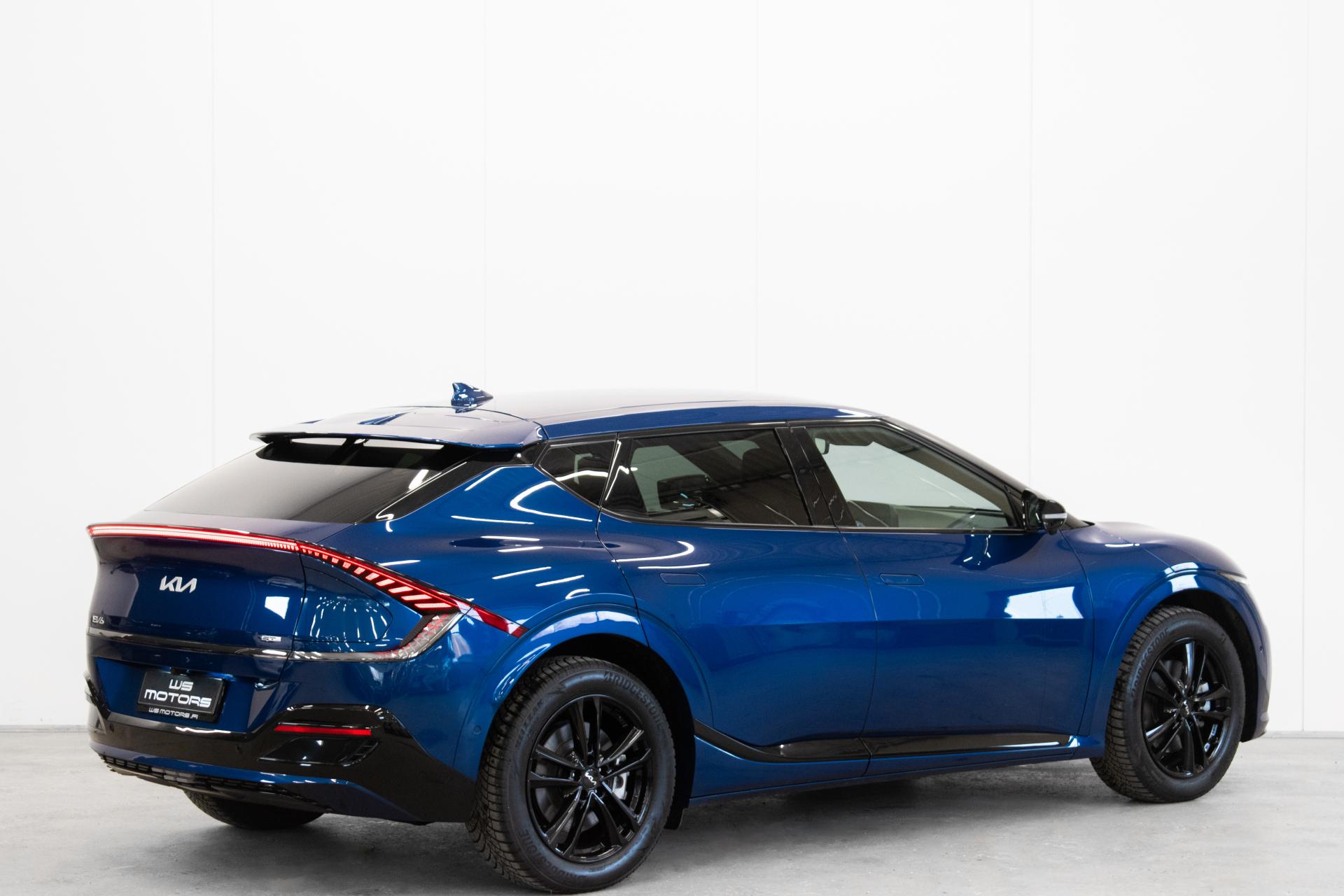 Näyttävä KIA EV6 GT-Line nelivetomalli halutuilla lisävarusteilla. Erittäin hieno sininen ulkoväri tuo GT-line varustellun auton muodot arvoonsa.