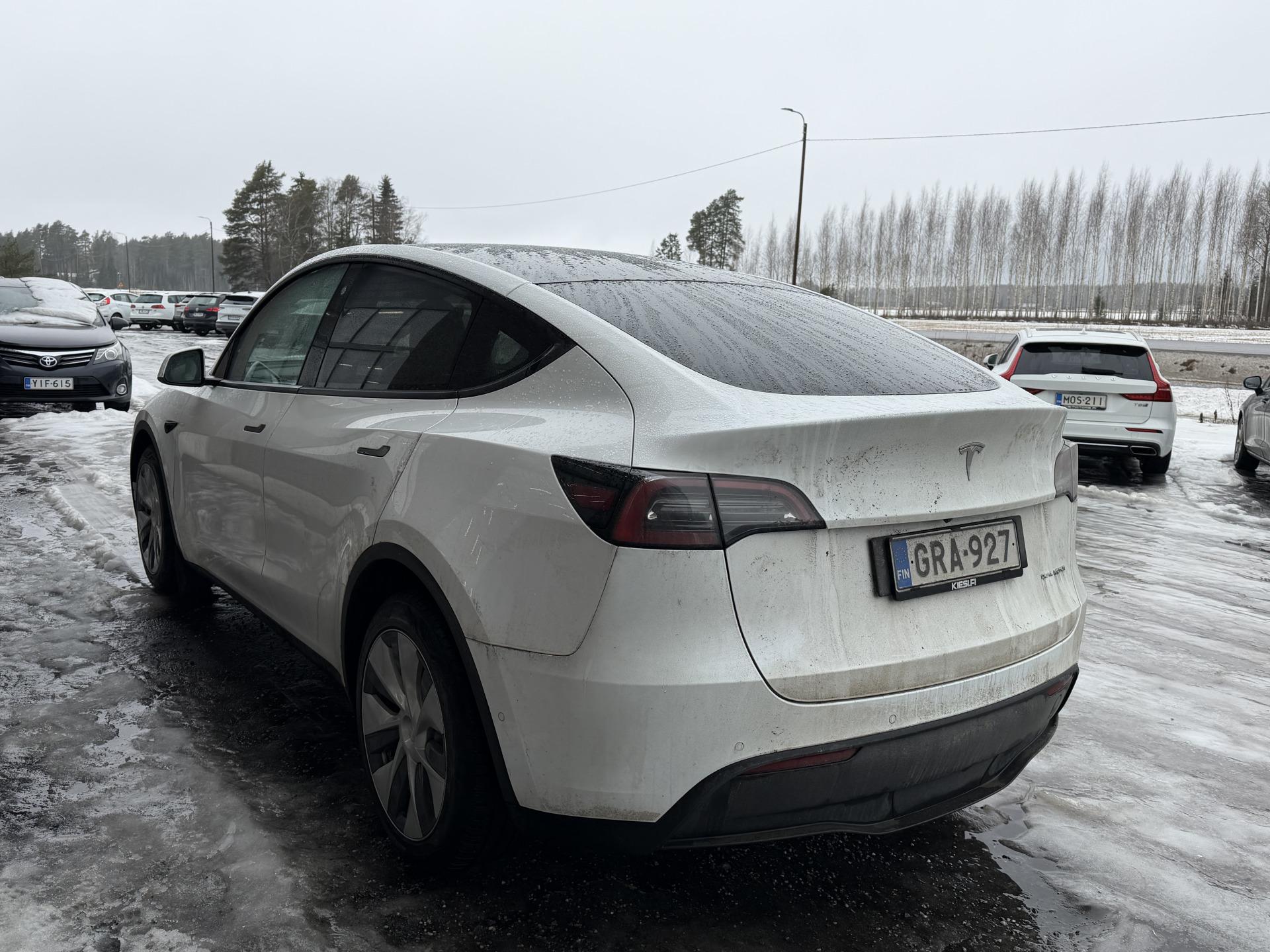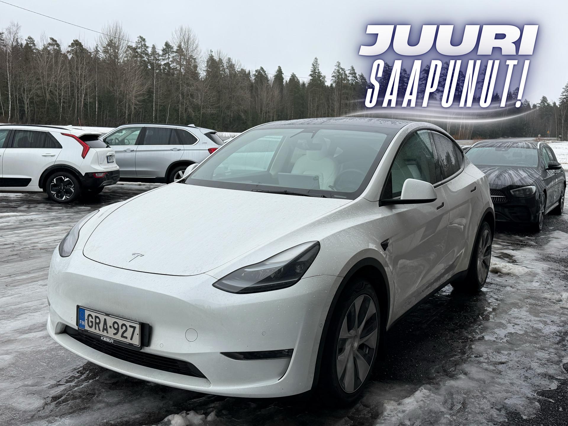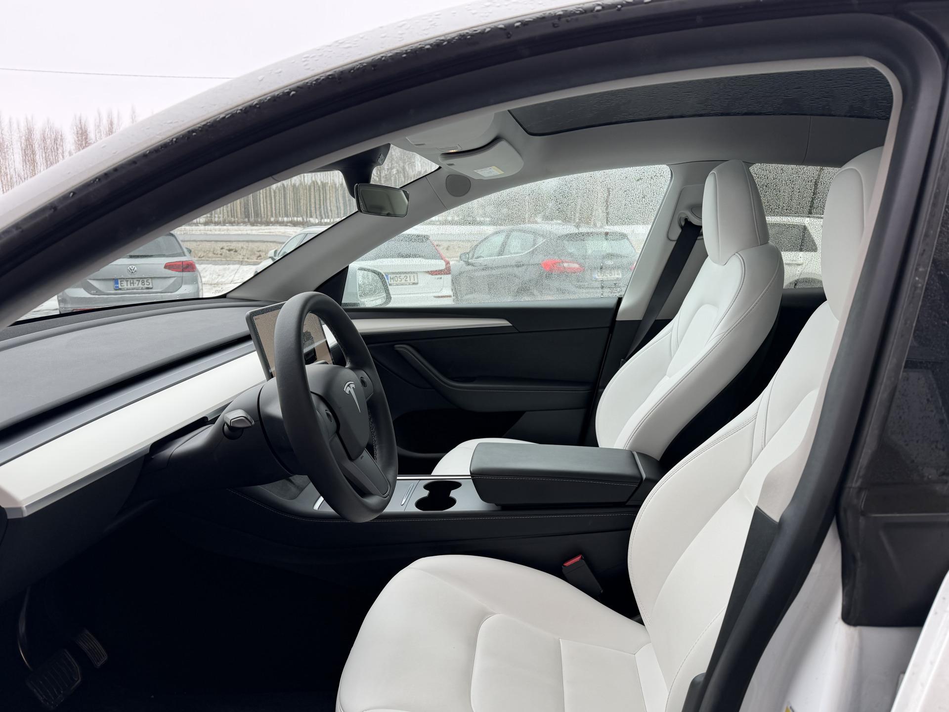 Huippuhieno Model Y valmiina seuraavalle. Tässä autossa on valittuna upea vaalea sisusta, joka erottaa kyseisen yksilön loistavasti massasta.